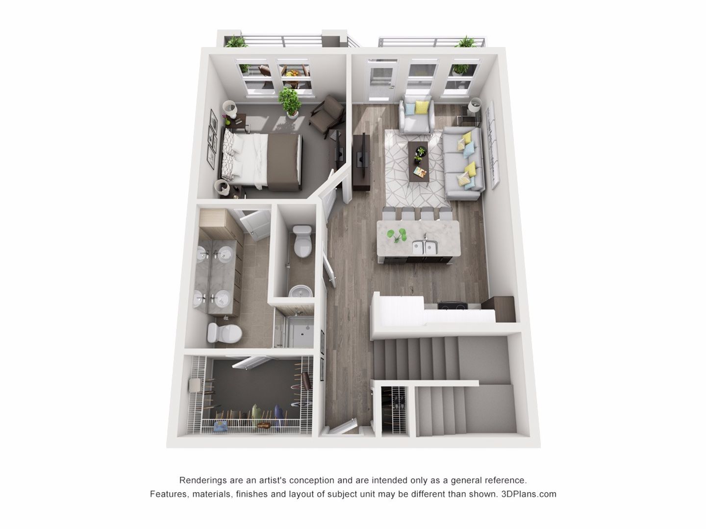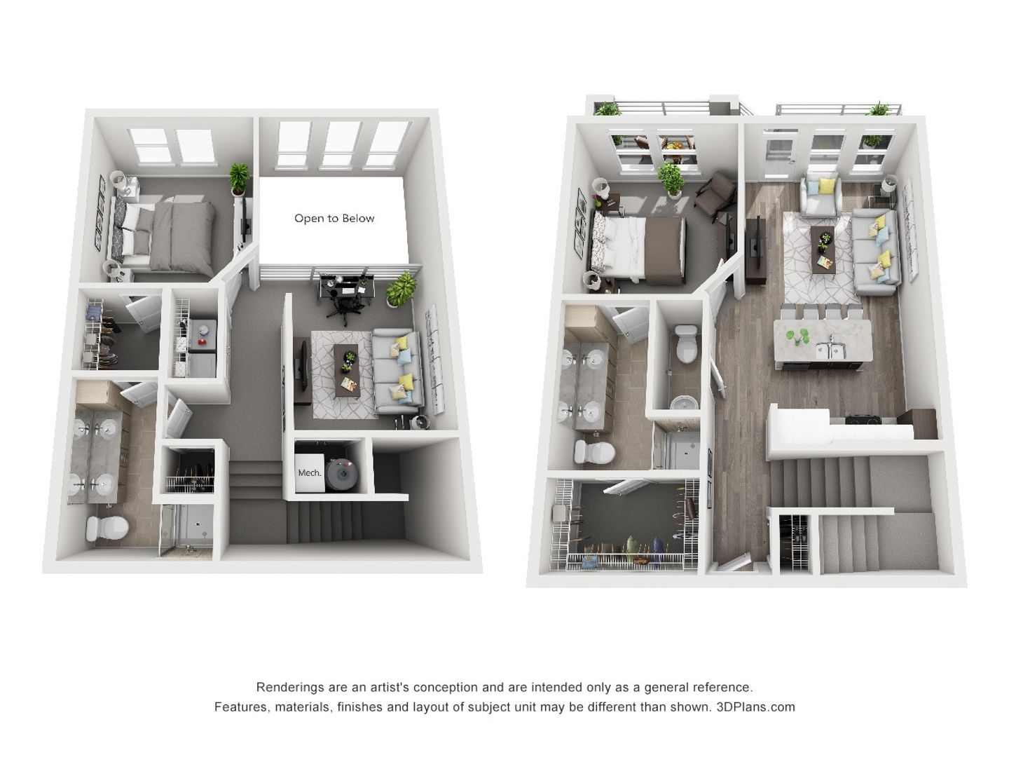 Two-Story Design: Unique vertical living with walk-up to second level.