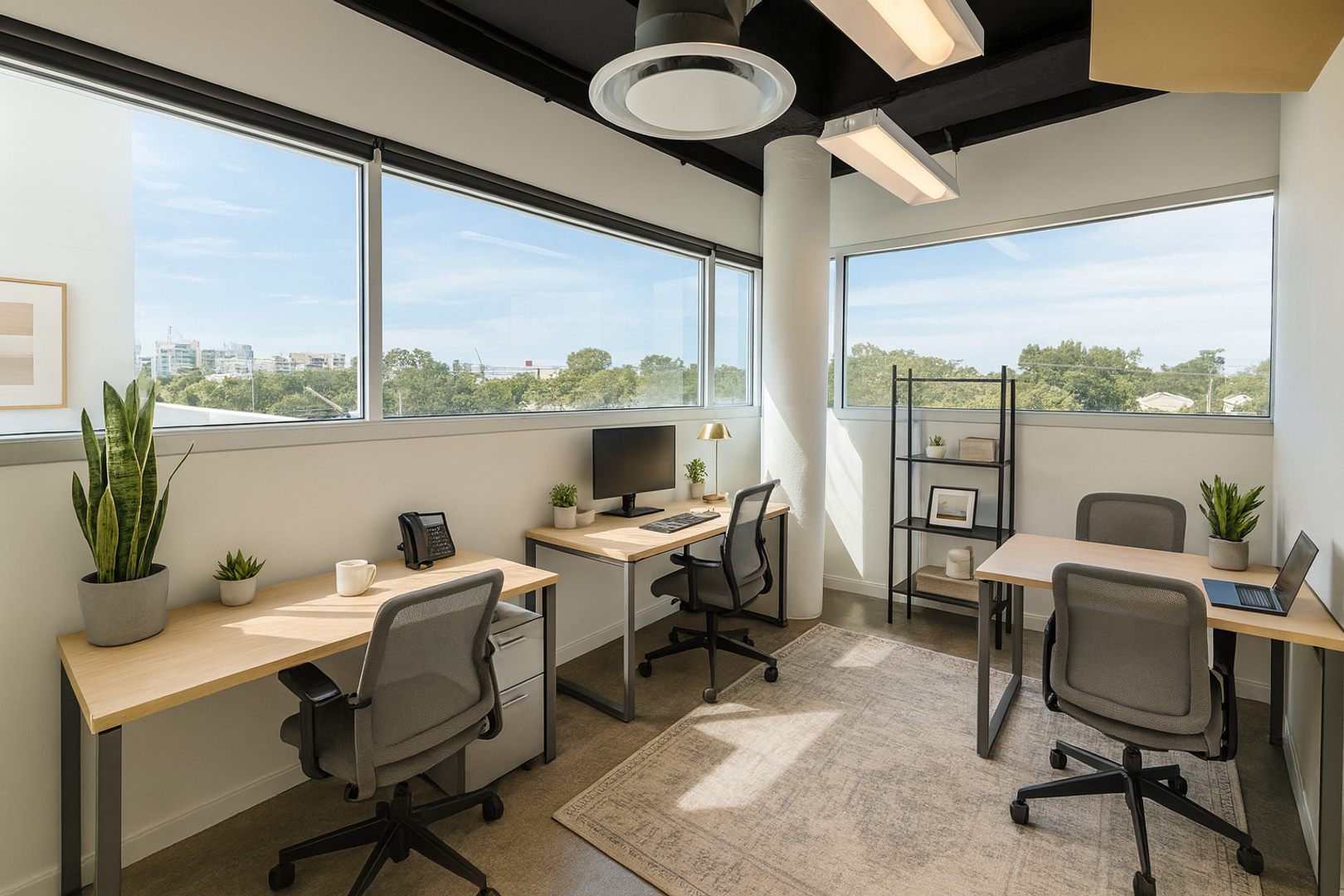 This sun-filled corner office features an open layout that can comfortably accommodate up to 10 people. The flexible floor plan is ideal for collaborative teams, creative workspaces, or a small business looking for a modern, airy environment. Let me know if you’d like to add square footage, amenities, or building details.